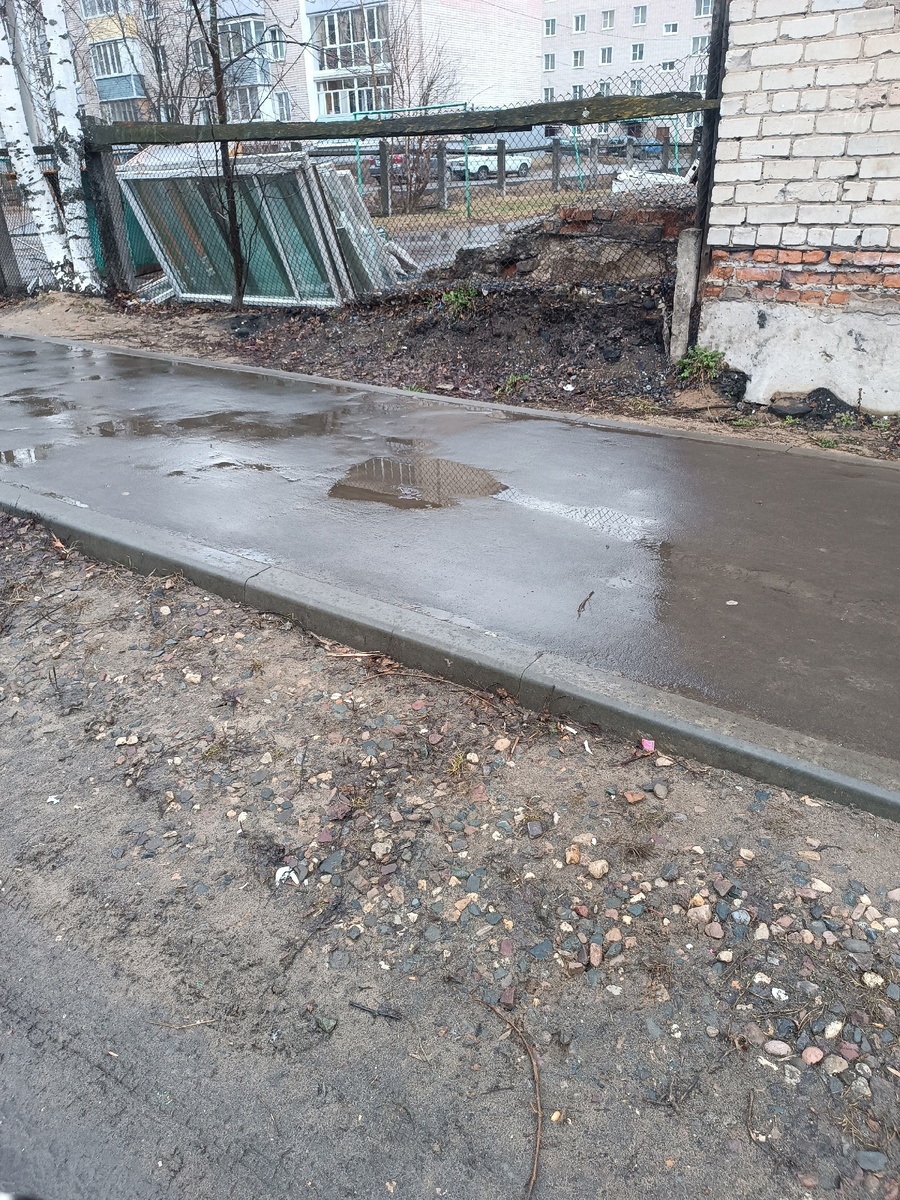 Адмирала Виноградова дом 39 пешеходная дорожка по всем правилам , а почему Ветлужский ул садовая вот такие тротуары на ровне с землёй ? Администрация как вы принимали с такими нарушениями? Может прокуратура нам пояснит где бардюрный камень.