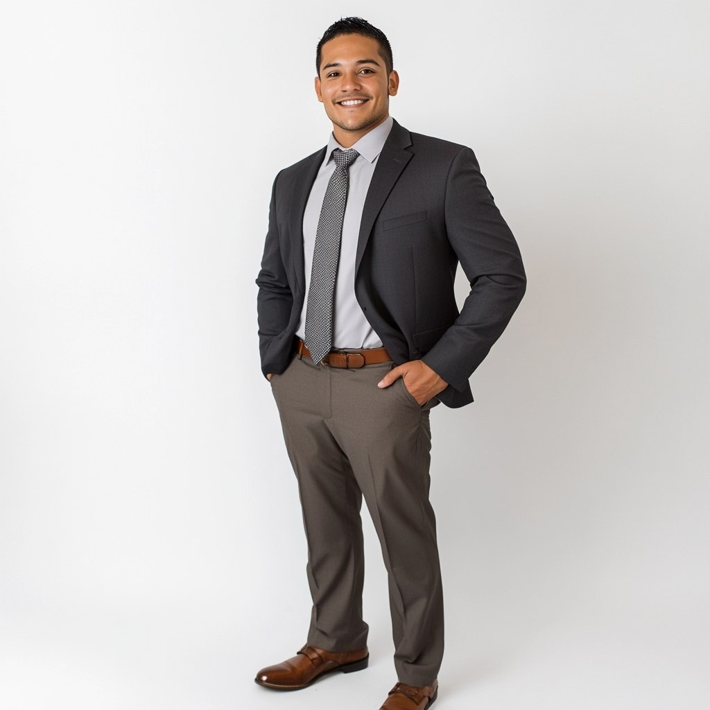 Создано на основе запроса: a professional photo of a man in business casual attire, he is 6 feet tall and has large shoulders and a football