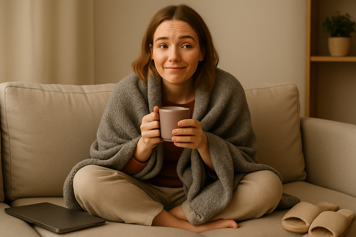 Физическое тепло очень сильно влияет на психику. Потому что мозг думает: «Ну если мы уже в пледе с чаем — значит, опасности нет».