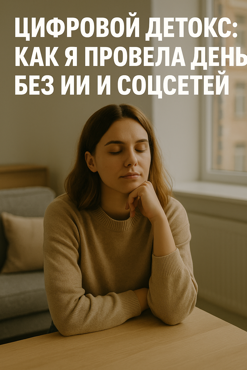 И почему это оказалось сложнее, чем я думала Ты когда-нибудь замечал(а), как часто отвлекаешься на уведомления? Я — нет. До тех пор, пока не решила провести день без нейросетей и соцсетей. Без ChatGPT, без телеграм-ботов, без TikTok, YouTube, Instagram и даже без «просто загуглить». Спойлер: это было настоящее путешествие внутрь себя — с откатами, открытиями и парой минут отчаяния. Первый удар пришёл в 8:13. Я потянулась за телефоном, чтобы «проверить погоду», но в реальности хотела просто залипнуть.