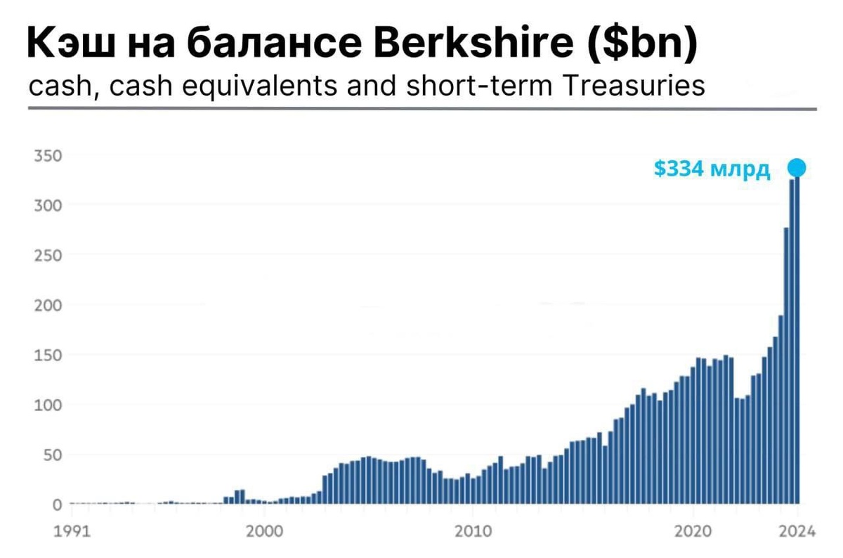 У Баффета хватит кэша на 95% S&P 500. Berkshire Hathaway может купить 476 из 500 компаний индекса — на счетах холдинга $334 млрд.