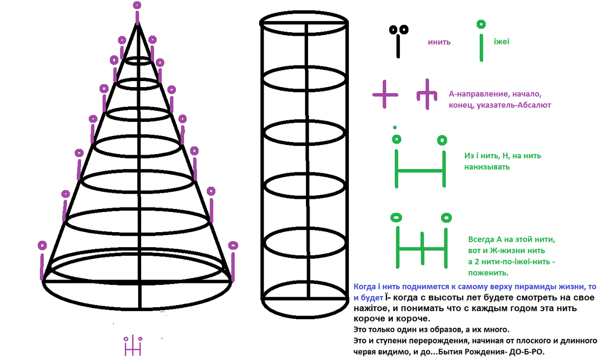 Когда мы могли переходить из одной мерности в другую, мы почитали березу, как символ жизни, как символ роста жизненных кругов. Наверное это было первое дерево для света жизни. Да, берi резi и чертi i на кара. Березi. Бер-берег-бережок-бережливый-береги приРОДу. Бер-Яги РОДной язык. Как берега берегут реку, так ты береги реки-речи своего языка. Слева КОН- каждого О-круга НИТЬ. Вот вам буквознак Ї-инить. Означает он ОБРАЗ i-----i нити. Если вкруговую от Аi до iА, то как раз О-круг. От А до Я. Как раз i+i или оооооо+оооооо- бусины жизненного круга и А(+) центральная, начало(на-КОЛ-О/ одеваем) и конец(на-КОН-ец/ одеваем), пирамида из колец. От кола центрального РАдиУС. И когда РАдиус делает первый ХОД, когда у нас 1ый градус сделал ШАГ, то это и есть начало Нового ГОДа. Потому как если смотреть сверху, как Бог , то увидим Новая-ОвО-год-i-на. О внутри О- слово Бога- ГОД (гуд, гад и в целом такое любое слово, все равно будет Градус Угла(О-круга) Деление-Доля. 1 градус из 360-ти, а в целом-ГО