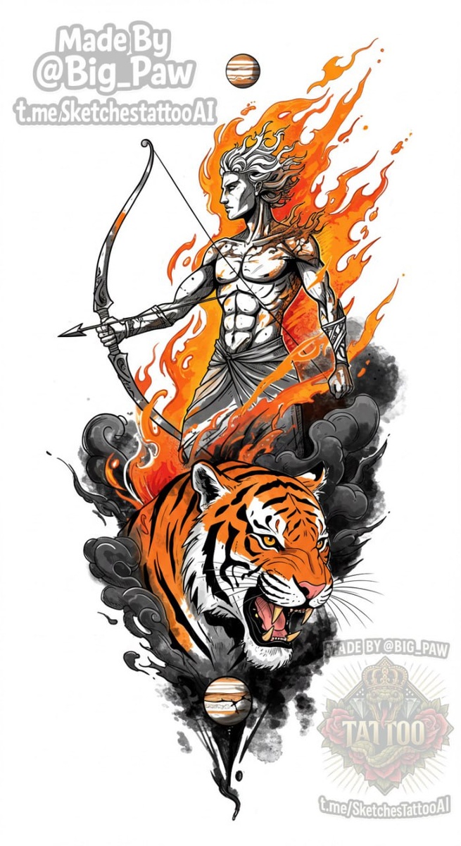 #2281 Подборка по запросу подписчика - а стрелец и тигр в таком же стиле? 🧠 SYNTX 💳 Донат 😎 НейроБро 💀 Эскизы от нейросети #стрелец #тигр #знакзодиака #эскизы #тату #татуировки