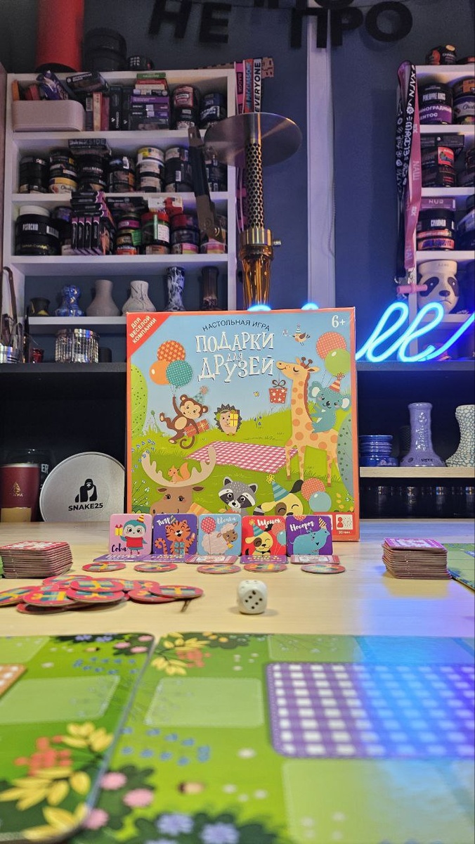 Настольная игра «Подарки для друзей»: идеальный выбор для весёлых вечеринок с детьми и не только! 🦊 🐭 🐯 🦁 🐧 🐥 «Подарки для друзей» – это яркая и красочная настольная игра, рекомендованная для детей от 6 лет и старше. Она идеально подходит для весёлой компании, развивая внимательность, логическое мышление и умение принимать решения. В комплект входят: * 108 карточек (4 карточки игроков, 24 карточки друзей, 58 карточек с условиями, 22 карточки с подарками); * кубик; * 4 игровых планшета. Суть игры заключается в том, чтобы пригласить как можно больше сказочных зверюшек в гости и собрать с них подарки. 🎁 Игра привлекает внимание своей оригинальностью и увлекательным процессом. Правила игры очень просты и объясняются всего за 5 минут. «Подарки для друзей» – это не просто настольная игра, а настоящее приключение, которое объединяет семью и друзей. Она подарит вам множество положительных эмоций и станет отличным дополнением к вашей коллекции настольных игр. Рекомендую попробовать