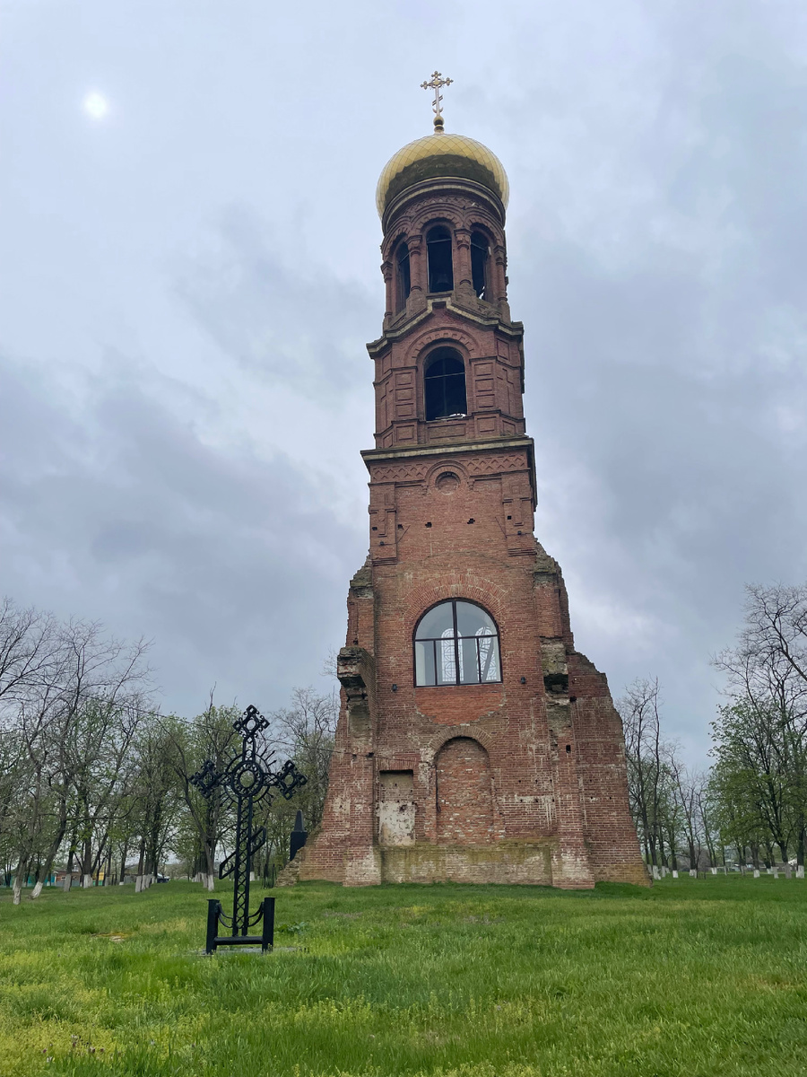 В станицу Темижбекскую ехала специально взглянуть на чудо Колокольню. Ее, действительно, видно издалека. Это оказался на самом деле недостроенный храм. История постройки очень увлекательная - и «стоит» он на холме, как бы «присматривает» за всеми. 💯 достопримечательность, рекомендуемая к посещению. 😍 Кратко: Колокольня - единственная уцелевшая часть храма святого Николая Чудотворца, который за месяц до начала Первой мировой войны начал возводить на средства Темижбекского казачества Александр Петрович Косякин - русский архитектор. Но казаки ушли воевать и денег не стало (( Достроить его не смогли… в 1950 гг хотели взорвать, но от взрыва пострадала школа, стоящая рядом, а колокольня не повредилась 👍 Так она и стоит - величественная до наших дней. В 2021 году местные жители совместно с батюшкой насобирали денег и установили колокола и теперь, она звонит по настоящему!!! Местные жители плачут от счастья и называют это чудом. Согласна 🙏 А теперь внимание! - представить каким мог ста