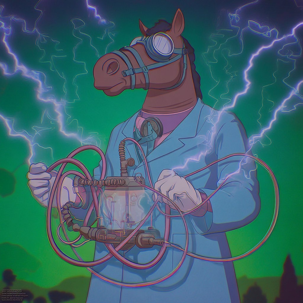 Создано на основе запроса: Dr.Horse the Horsinator --- Автоперевод: Доктор Хорс Хорсатор Хорошо получилось? 🤔 https://dzen.ru/id/65c0c65c86e4f837c27b24d7 #ИИ #AI #нейросеть #midjourney #art