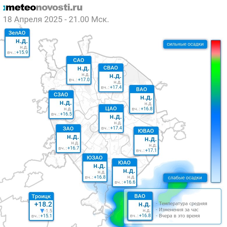В 21:00 в Москве было от +14.9°C до +21°C, средняя температура +19.3°C #погода #Москва #весна #температура #18апреля #пятница Перейти на сайт Прогноз погоды на 14 дней