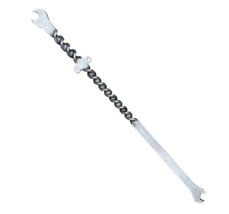 Очередной хит-парад вещей из товарной ниши «самооборона и выживание», которые производители хотели бы видеть в вашей собственности. Насколько они эффективны в том качестве, в котором их предлагают, пусть рассудят время и практика, а также специалисты и прочие эксперты. Если это обычный гаечный ключ, то его можно было бы сделать и попроще. Чего только стоит одна пафосная гарда. Она словно так ненавязчиво намекает на то, что это не просто ключ, а ещë и вещица имеющая определëнное сходство с мечом. Но и без этого мозолит глаз откровенная оригинальность инструмента закрученного винтом. Длина изделия достигает 62 см. Этот достаточно большой ключ изготовлен из стали с высоким содержанием марганца. Портативный аварийный многофункциональный автомобильный инструмент с длинной ручкой, которым можно сделать много добрых дел: начиная с ремонта автомобиля, и заканчивая аварийным разбиванием стëкол в заклинивших дверях. И конечно, ключ идеально подходит в качестве средства самообороны в цивилизованн