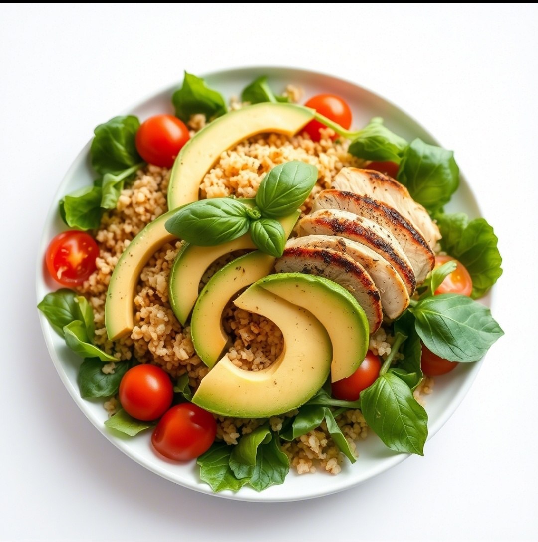 Идея для вкусного и полезного диетического блюда, которое насытит организм полезными веществами, но при этом останется легким: - Киноа — 100 г (сырая) - Куриная грудка — 1 шт. (около 200 г) - Авокадо — 1 шт. - Шпинат или руккола — 50 г - Огурец — 1 шт. - Лимон — 1/2 шт. - Оливковое масло — 1 ст. ложка - Соль, перец, паприка — по вкусу - Чеснок (по желанию) — 1 зубчик - Промойте киноа под холодной водой (это уберет горечь). - Вскипятите воду в соотношении 2:1 (вода:киноа), добавьте щепотку соли. - Уменьшите огонь и варите киноа около 15 минут, пока вода не впитается. - Готовую киноа остудите. - Разогрейте духовку до 180°C. - Натрите куриную грудку смесью оливкового масла, соли, перца и паприки. Добавьте измельченный чеснок для аромата (по желанию). - Выложите грудку на противень, застеленный пергаментом, и запекайте 20–25 минут, пока мясо не станет мягким внутри. - Достаньте из духовки и нарежьте тонкими ломтиками. - Очистите авокадо, нарежьте его небольшими кубик