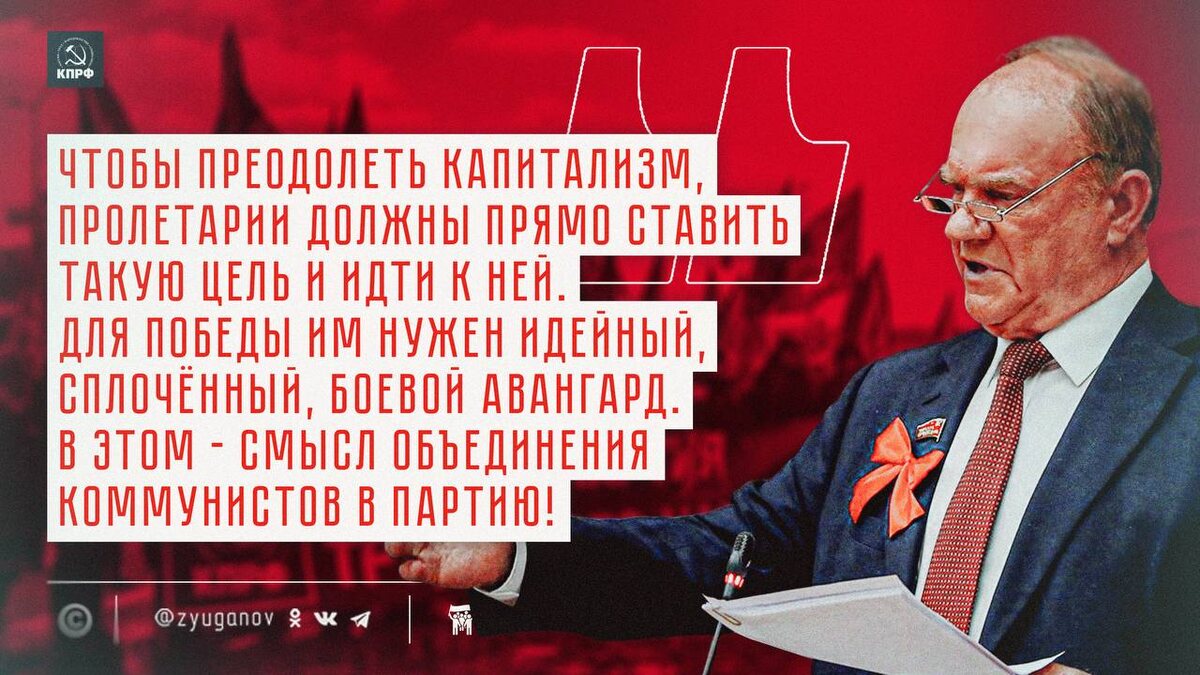 Капитализм цепко держит нашу страну в своих хищных костлявых руках. Чтобы преодолеть капитализм, пролетарии умственного и физического труда должны прямо ставить такую цель и идти к ней. Для победы им нужен идейный, сплочённый, боевой авангард. В этом и состоит смысл объединения коммунистов в партию, суть и смысл нашей работы!