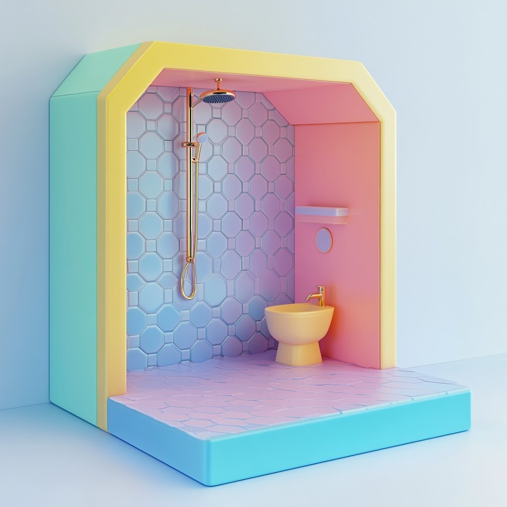 Создано на основе запроса: a colorful 3d rendering of a wide rectangle opened press kit box designed like a mini bathroom set. Like a dollhouse or diorama. And the wall is empty and hexagon-tiled and there is a showerhead. --- Автоперевод: Красочный 3D -ленточный рендеринг широкой прямоугольной открытой коробки для нажатия нажатия, разработанной как мини -набор для ванной комнаты. Как тебе вариант? 🤔 https://dzen.ru/id/65c0c65c86e4f837c27b24d7 #ИИ #AI #нейросеть #midjourney #art