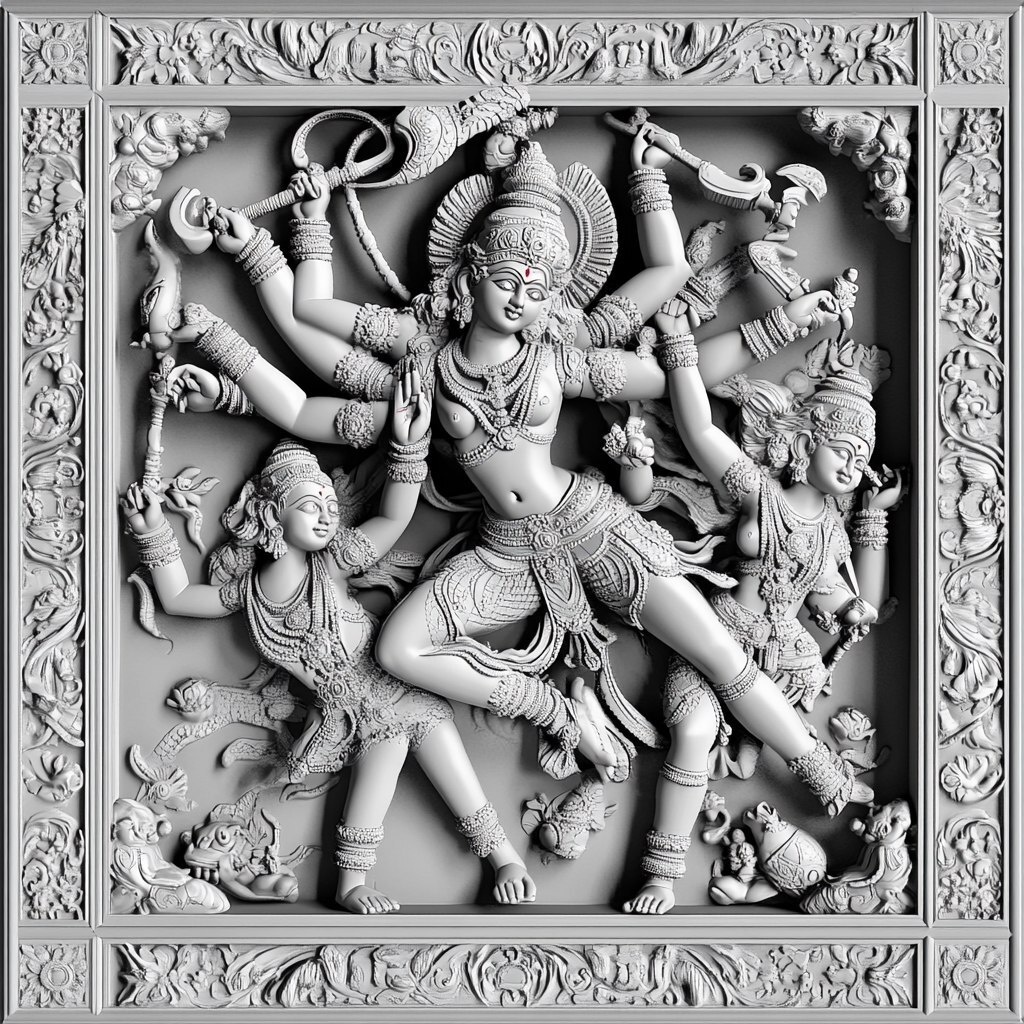 Создано на основе запроса: relief image of Khali Durga, in the style of classical renaissance