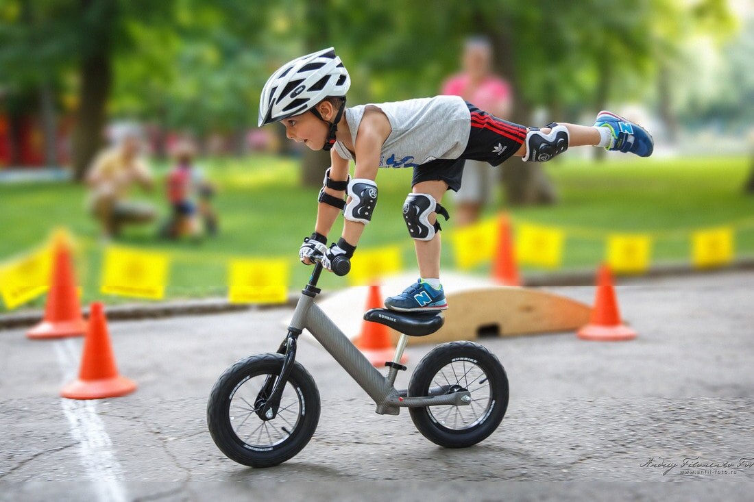 На улице уже тепло, а значит, самое время кататься на велосипеде или самокате. У ребёнка ещё нет “транспорта”? Давайте вместе разберёмся, как его выбрать! Катание на велосипеде входит в топ самых популярных летних занятий. Об этом и других видах досуга мы писали тут. Чтобы это занятие было в удовольствие, важно позаботиться о качественном и удобном транспорте. Первое, от чего стоит отталкиваться — возраст ребёнка. Для самых маленьких подойдёт трёхколёсный велосипед или беговел. Для детей 5-8 лет — двухколёсный без особых “наворотов”. Для более старших непосед можно выбирать продвинутые модели с двойным тормозом, переключением скоростей. При выборе модели обязательно нужно соотносить рост ребёнка с размером колёс велосипеда. Вот рекомендованные соотношения: Обращайте внимание и на размер рамы. Самый простой способ понять, подходит ли велосипед по росту — поставить ребёнка перед седлом так, чтобы оно упиралось в копчик, а рама была между ног. Отлично, если расстояние между рамой и пром
