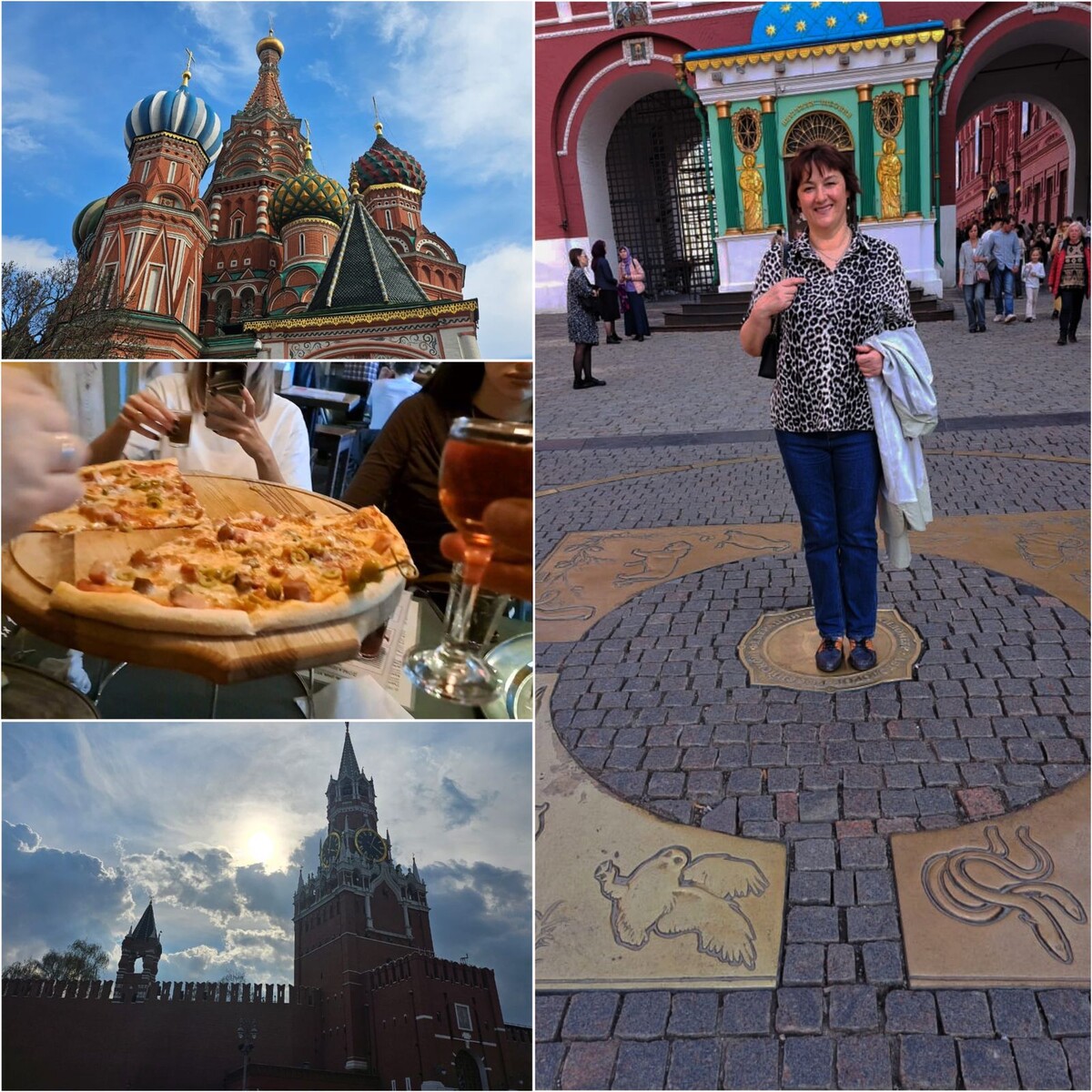 Всем привет из Москвы! Хочу с вами поделиться своими впечатлениями об этом прекрасном городе, о том как прошёл первый день. Доехали мы до Москвы за 3,5 часа и уже в 13 часов были у дочери. Нас она встретила вкусным обедом, да не простым. Такое блюдо я ела впервые. Это была паста с кальмарами и грибами в сливочном соусе! После обеда мы немного отдохнули и поехали на Красную площадь гулять. Погода нам улыбалась, было солнечно и очень тепло: до 25 градусов. Первой мини-задачей было найти монумент городу-герою Смоленску - нашей родины. Нашли, сделали семейное фото и пошли гулять дальше. Возле Красной площади находится интересная достопримечательность "Нулевой километр" - точка, от которой отчитываться дорожные расстояния от Москвы. Погуляли по Зарядью и начался ливень. Мокрые до нитки пошли в рюмочную. Попробовали несколько интересных настоек, в том числе настойку-борщ. После этого съели большую вкусную мясную пиццу и отправились довольные домой на такси. Так прошёл наш первый день в Моск