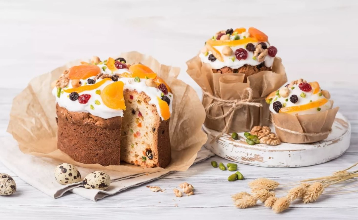 Традиционно важное украшение праздничного стола — кулич. Это символ приближающегося праздника и ожидаемое лакомство.