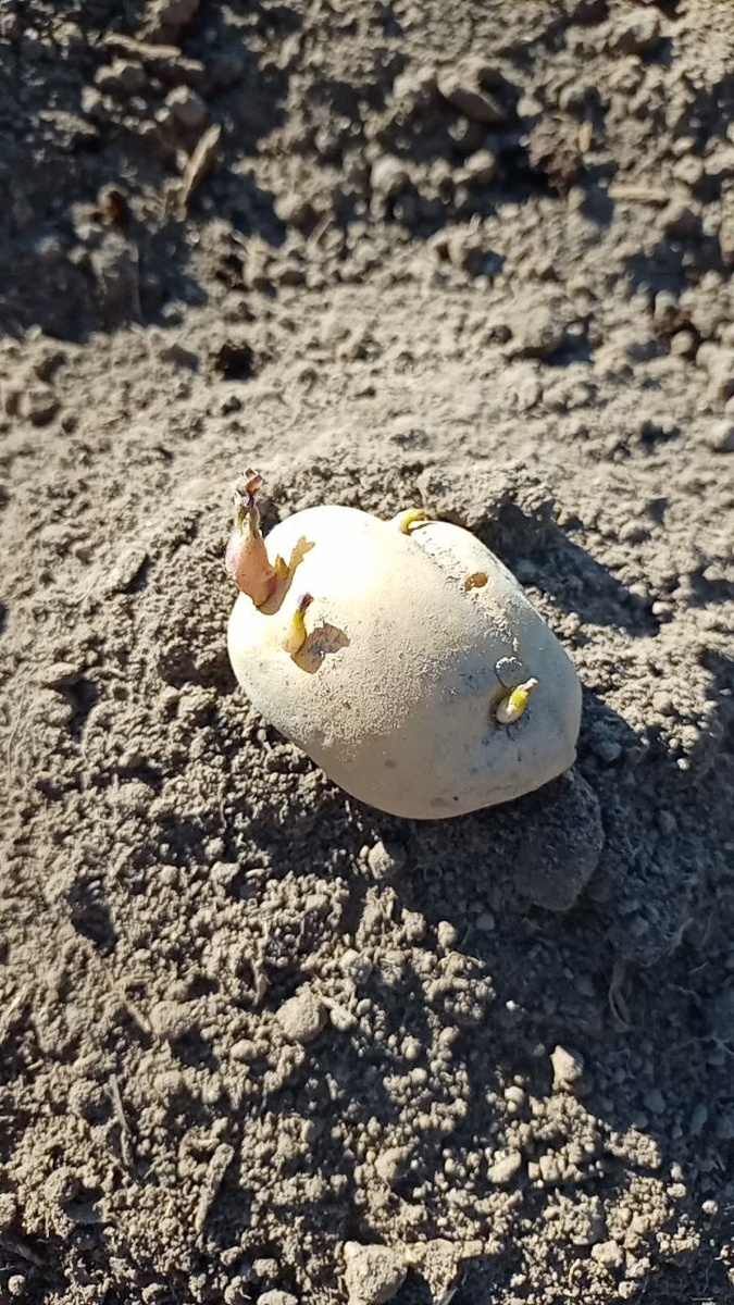 За окном 18 апреля, температура воздуха +23 градуса. Снег давно сошел, хотя в этом году его почти и не было, зимы был всего один месяц. Земля в огороде уже созрела и пришла в голову идея провести еще один эксперимент - посадить картофель в апреле. Для Ленинградской области сроки посадки картофеля со второй декады мая до начала июня, по сути, сейчас на месяц раньше. До этого самый ранний срок посадки был 4 мая, но были возвратные заморозки, и картофель сильно пострадал. Итак, на месте старой теплицы провел рекультивацию участка. Мотоблоком прокультивировал почву, благо земля обрабатывалась и особого труда это не составило. Если разрабатывать дерн или сильно засоренную сорняками почву, то необходимо тщательно убрать все корни, иначе замучаетесь потом полоть, также на таком участке будет большое количество проволочника, и клубни картофеля будет необходимо обрабатывать от вредителей или вносить в почву, например Провотокс. Ширина захвата мотоблока около метра, поэтому обработка заняла не