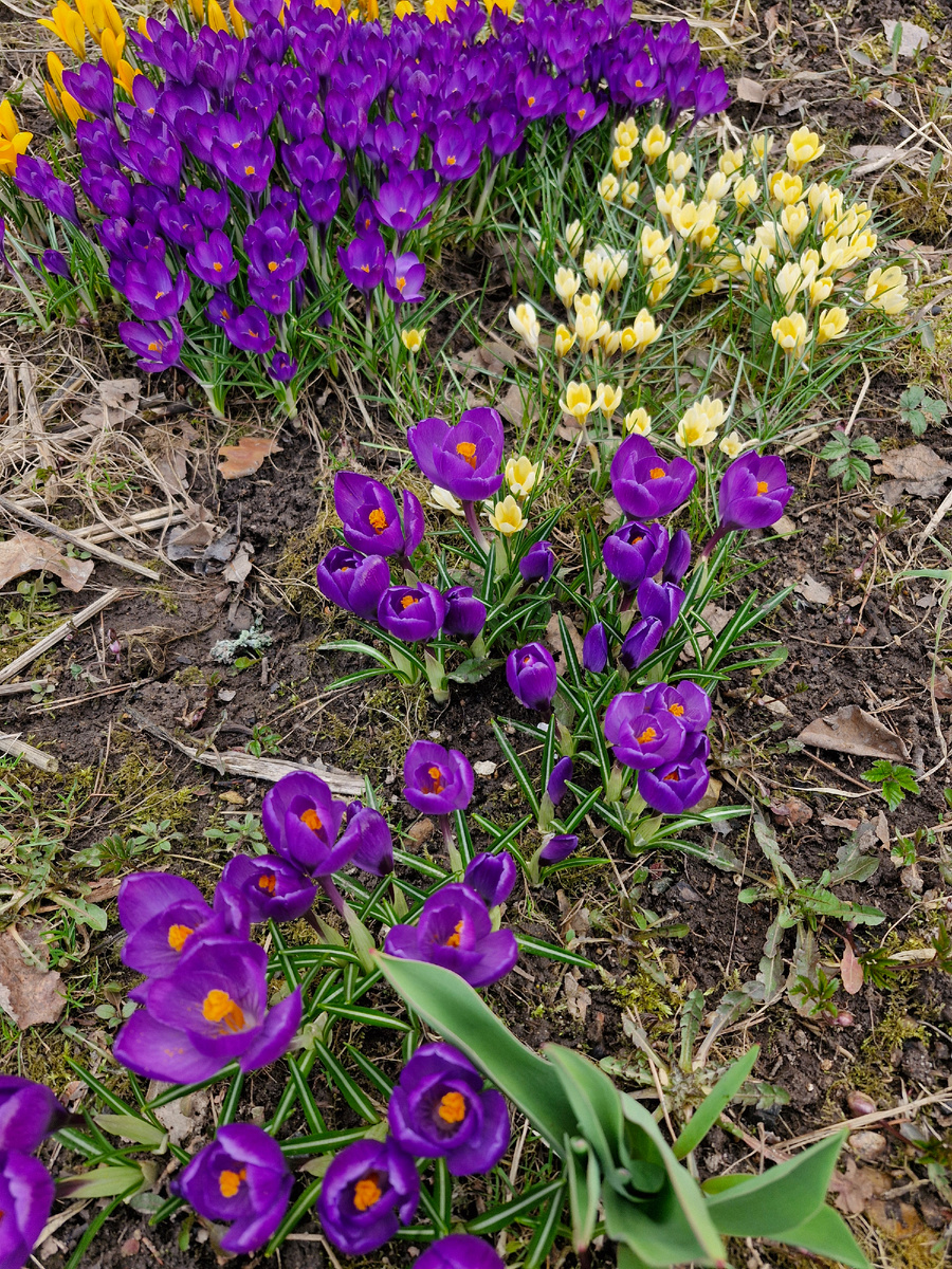 Самое наверное яркое впечатление на меня производят крокусы. Вот много всяких разных цветов у меня растет и не у меня, но я ими любуюсь. И надо отдать должное, что все они прекрасны! У меня нет отрицательных слов для описания цветов, только все высоко положительные. Обожаю все цветы. Но вот крокусы, не в обиду всем другим, выделяю. И не устану писать и говорить, что поражает меня этот цветок. Ранней весной, когда ещё даже не убрано все вокруг, у нас ещё сыро на участке, вдруг расцветает полянка. Относительно стебелька и тонких листьев, цветы просто огромные. Сегодня вернувшись с работы и войдя в калитку, мы ахнули. Причём друг за другом с мужем. Он шёл впереди, слышу АХ! И в следующий момент мой взгляд тоже останавливается на них и тоже АХ! Я судорожно тащу телефон из сумки. Руки трясутся от предвкушения, такая красота и стоит никому не известная. Срочно надо всем, срочно надо показать!!! Муж таскает сумки с продуктами из машины, и говорит, что ты открой мне дверь в дом, а потом уже