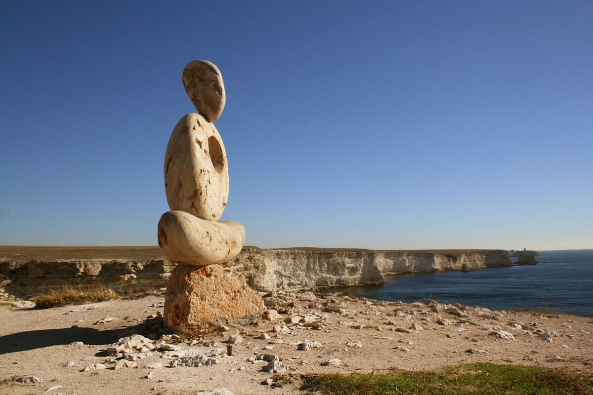 Мыслитель Тарханкута 📍45.340848, 32.522606 Необычная скульптура — «Мыслитель. Сердце Тарханкута» — одна из главных достопримечательностей Западного Крыма. Она находится на Белой скале мыса Тарханкут и неизменно привлекает туристов со всего мира, как, впрочем, и окружающие пейзажи. Когда-то ими вдохновился и скульптор из Санкт-Петербурга Александр Никитин. Именно он является автором «Мыслителя». Эта трехметровая скульптура является композицией из трех камней, которые водружены друг на друга, и напоминает человека, символизируя его единство с природой. 🔥Крым - лучшие локации