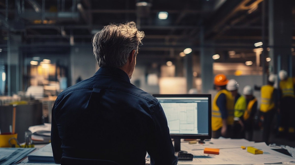 Создано на основе запроса: photo of a business man in a construction office at a desk, dark blue collared shirt. He is looking at a desktop computer and looking three-quarters away from the camera. Computer screen is out of focus. Photo taken from behind at an angle. The office not overly corporate and is slightly out of focus with cool toned bokeh lighting. There are people in high visibility vests and hard hats out of focus in the background. Images of blueprints on the walls. the majority of subject matter are on the right side of the frame, rule of thirds, f-stop f/8, dramatic chiaroscuro lighting with high contrast, subtle orange light flares, bokeh lighting. --- Автоперевод: Фото бизнеса в строительном офисе за столом, темно -синяя рубашка с воротником. Необычно выглядит? 🤔 https://dzen.ru/id/65c0c65c86e4f837c27b24d7 #ИИ #AI #нейросеть #midjourney #art