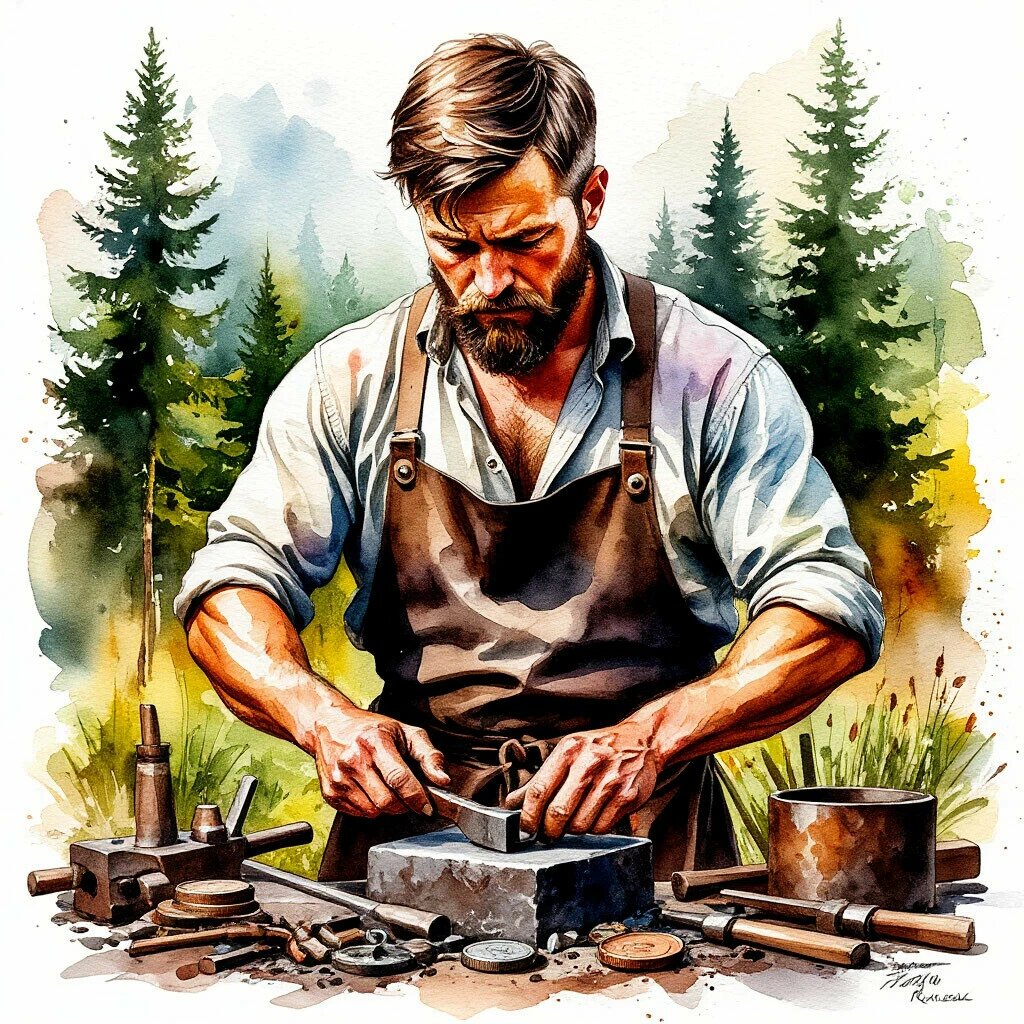 Давным-давно, когда мир был ещё молодым, а люди обменивались дарами природы — ягодами, камнями и ракушками, — жил на свете старый мастер по имени Лучезар. Он был волшебником металлов: умел превращать грубые слитки в диковинные вещи в звонкие колокольчики, крепкие замки и даже крошечные фигурки зверей. И инструмент у Лучезара был волшебный – огромный молот и крепкая наковальня. А жил мастер по металлам в кузне, что далеко от города, чтобы не мешать никому своей звонкой работой. И мог Лучезар и оружие выковать, и блоху подковать, и диковинный механизм для передвижения придумать. От того и любили люди крепкого мужика. Потому и ходили к нему за советами да для ремонта утвари.
