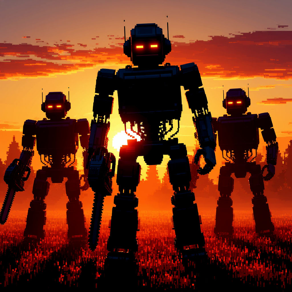 - Чистильщики (те самые дроны с бензопилами вместо рук) охотятся за "проснувшимися" ИИ.