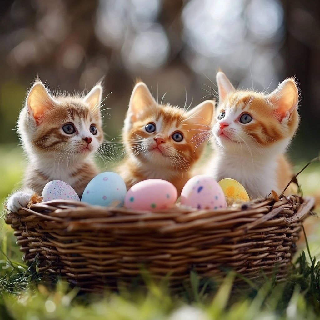Создано на основе запроса: beautiful cats purring at Easter, cute photo, looks realistic
