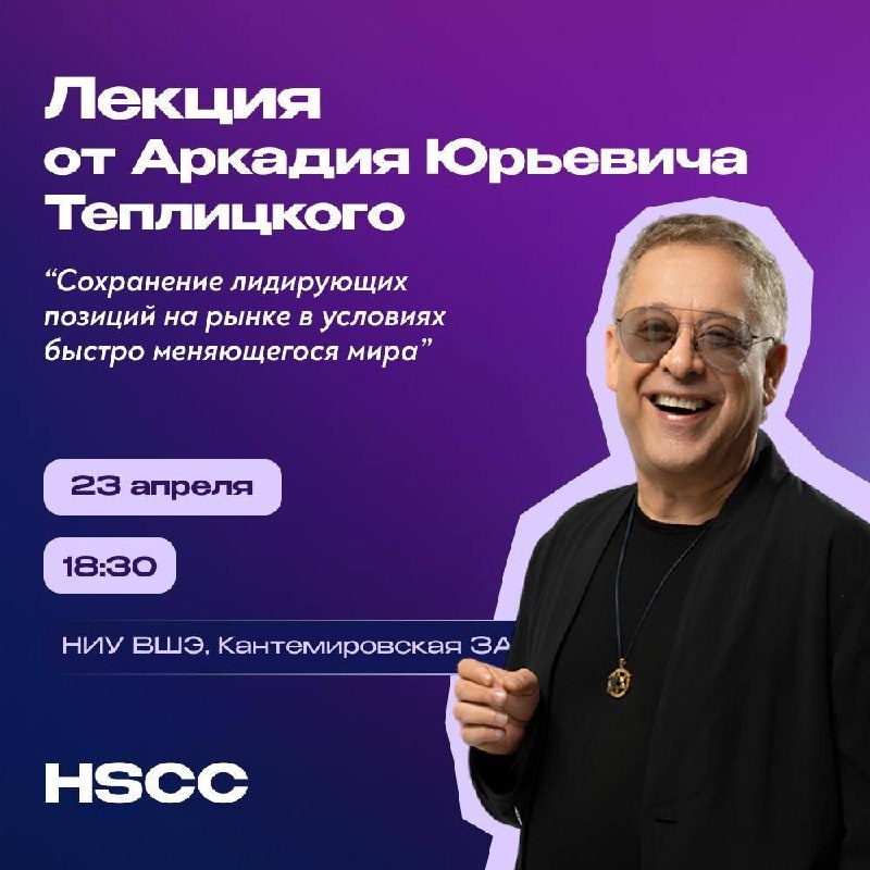 Что делать? Сходить на лекцию Аркадия Теплицкого от HSE SPb Case Club💛 🟨 Аркадий Юрьевич Теплицкий является успешным предпринимателем с более чем 30-летним опытом. 🟨 Он — основатель: - Группы компаний «Адамант» (22 ТРК в Санкт-Петербурге общей площадью более 1,5 млн кв.м.) - Кондитерской студии ARTE Fine art cakes (Дубай) - Сети ресторанов Maximilian Brauhaus - Платформы для продажи цифрового контента LAVA.TOP 🟨 На встрече вы сможете: - Узнать о профессиональном пути Аркадия Теплицкого и его опыте управления в условиях перемен. - Рассмотреть примеры эффективных управленческих решений. - Получить практические рекомендации по формированию устойчивых стратегий. 🟨 Дата и время: 23 апреля, 18:30 🟨 Место: НИУ ВШЭ, Кантемировская улица, 3к1, аудитория 435 🟨 Регистрация обязательна. Для регистрации воспользуйтесь ботом в телеграмме Что ещё сделать? 😋 1. Включить уведомления в канале. 2. Пригласить своих знакомых подписаться на канал @stud_career 3. Начать строить своё светлое