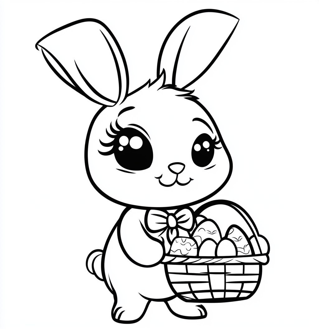Создано на основе запроса: Cute, kawaii bunny with a bow holding an Easter basket