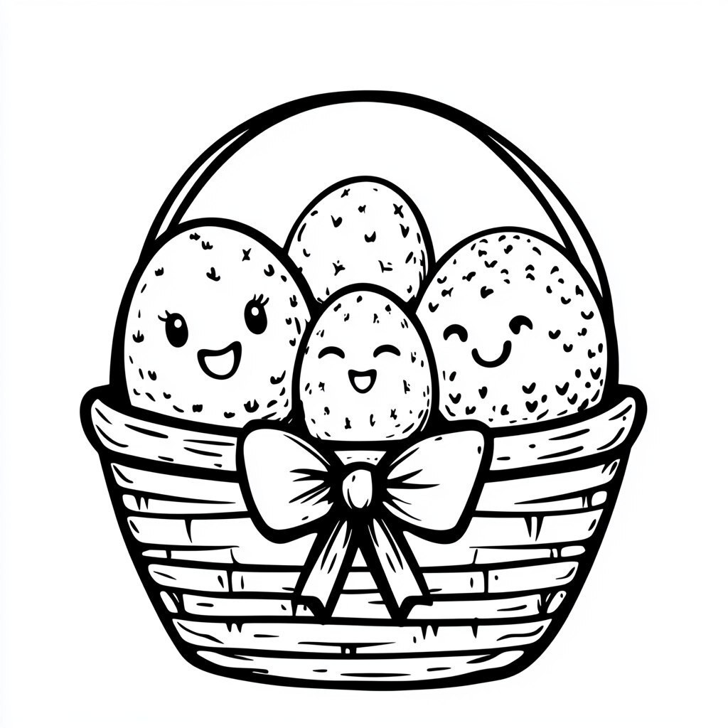 Создано на основе запроса: Easter basket with eggs, clipart in the style of kawaii, white background, simple, cartoonish design, cute, bow