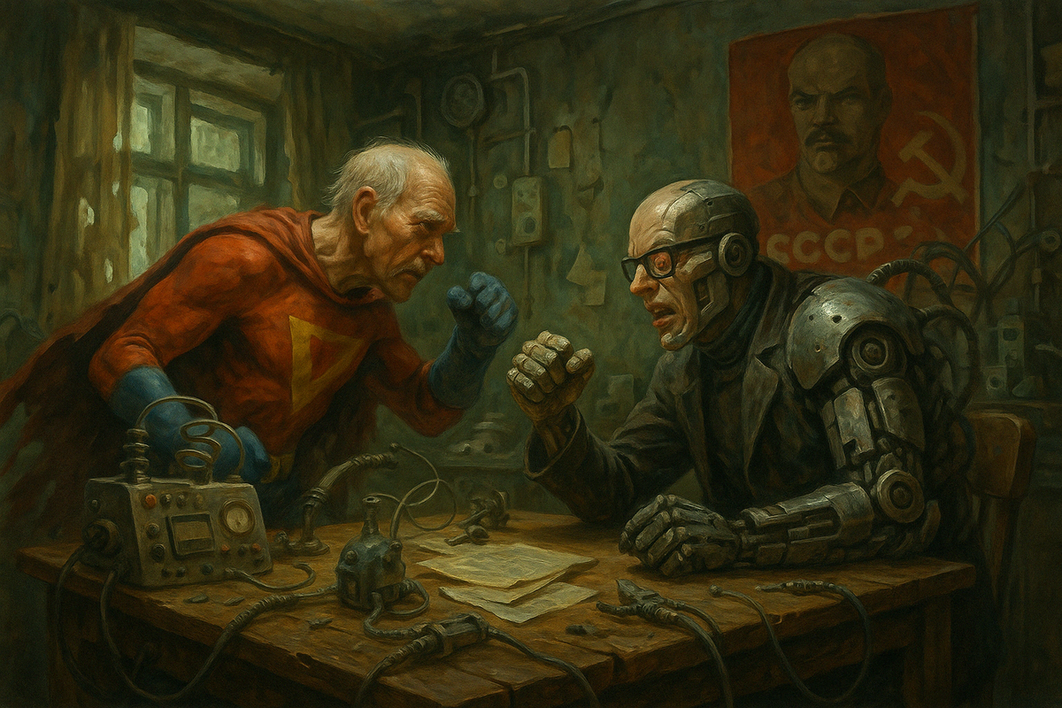 Кибернетик постарел. Вообще его звали Николай Афанасьевич Сорокин, но, если ты злодей планетарного масштаба, то без звучного псевдонима не обойтись. Лет сорок назад, в момент нашей первой битвы, он был совсем другим. Я тогда как раз отказался от красного плаща за спиной. Генсека убедил мой довод, что, подражая Героям Атлантики, Чудо-Товарищ себя умаляет.