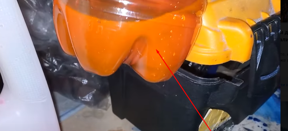 5. Далее ищем большую емкость для слива старого отработанного антифриза и поставляем ее под переднюю часть авто. В идеале, - лучше застелить большим куском пленки.