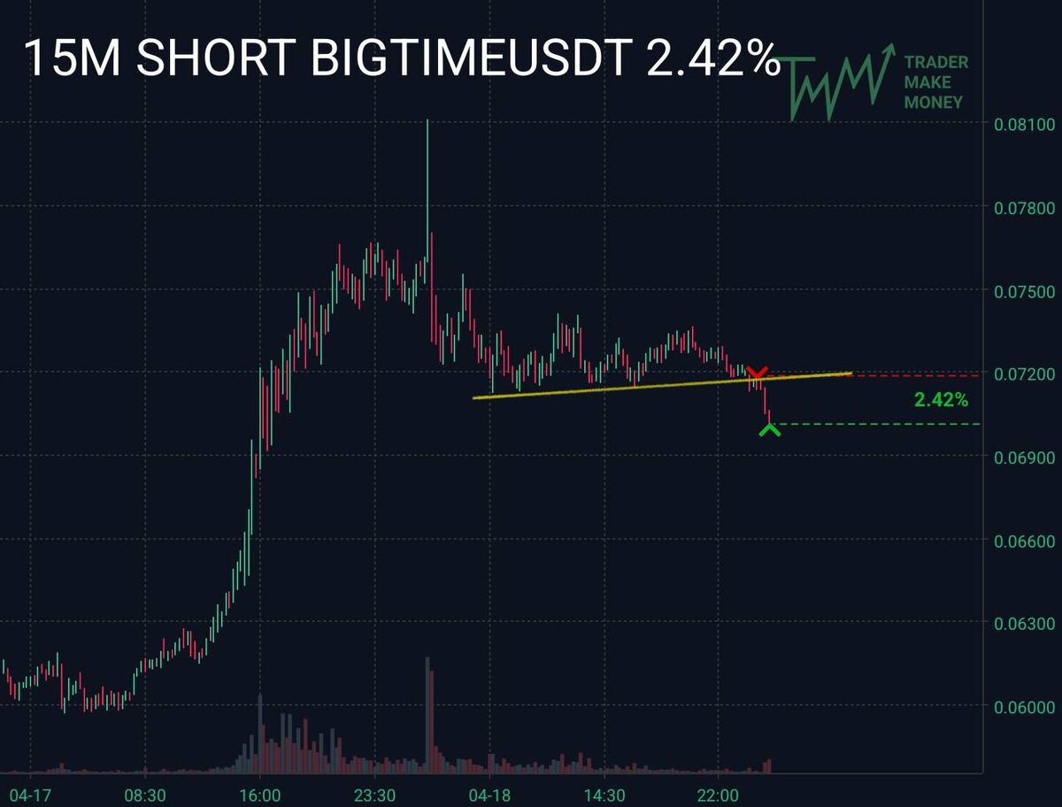 #BIGTIMEUSDT Забрал не большой пробой по монете. За счет риск прибыль 1к4 получился неплохой профит.