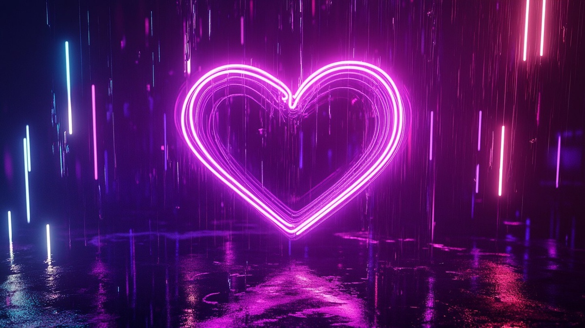 Создано на основе запроса: y2k style 3d render of neon hear glowing floating in dance lights c4d