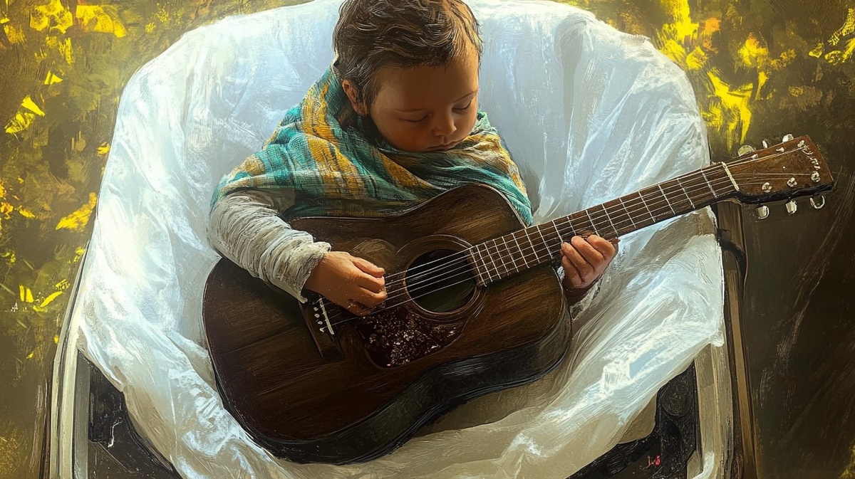 Создано на основе запроса: playing guitar --- Автоперевод: Играя на гитаре Необычно вышло? 🤔 https://dzen.ru/id/65c0c65c86e4f837c27b24d7 #ИИ #AI #нейросеть #midjourney #art