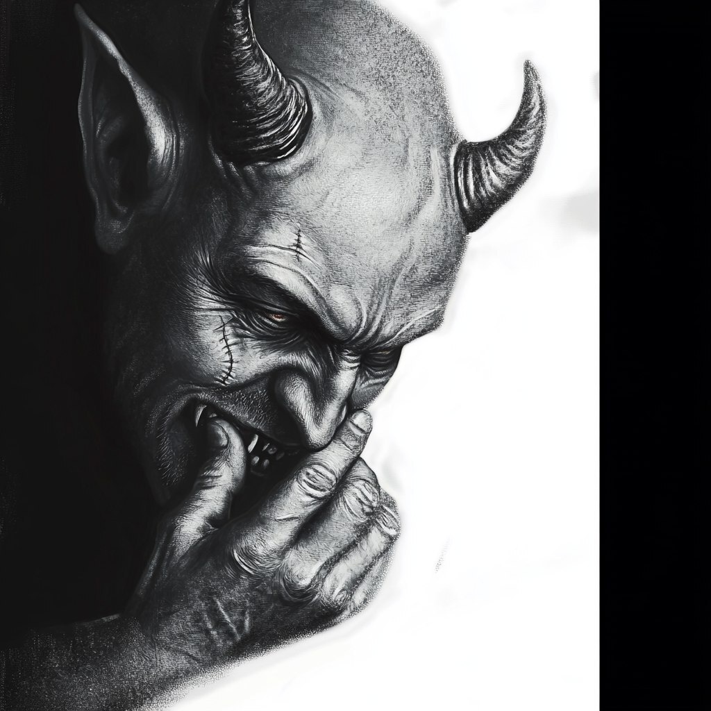 Создано на основе запроса: Face of Devil with Hand before mouth, high quality, realistic pictute, Small Horn