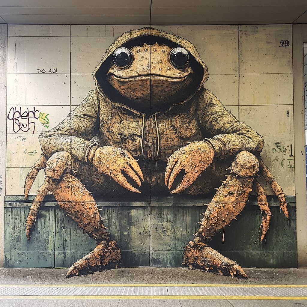 Создано на основе запроса: suburban crustacean with hooded sweatshirts,gangster stuff at the grafitti train Station --- Автоперевод: Пригородное ракообразное с капюшоном, гангстерские вещи на железнодорожной станции граффити Неплохо выглядит? 🤔 https://dzen.ru/id/65c0c65c86e4f837c27b24d7 #ИИ #AI #нейросеть #midjourney #art