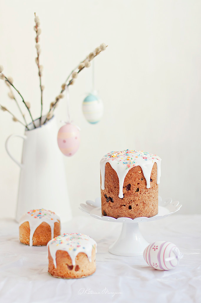 9. Готовый кулич остудить и украсить глазурью и посыпкой.