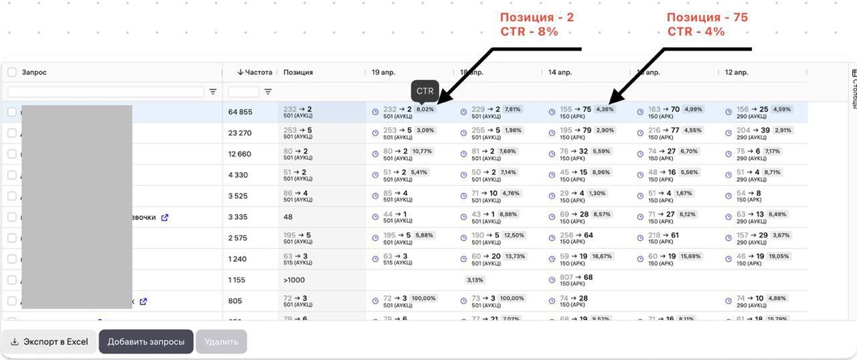 🤯 CTR растет по мере продвижения товара в топ выдачи. - Позиция - 75 CTR - 4% - Позиция - 2 CTR - 8% Что же получается, что при росте позиций в выдаче, поднимается ценность товара? Интересный вопрос для размышления. Фото, цена на товар не менялись.