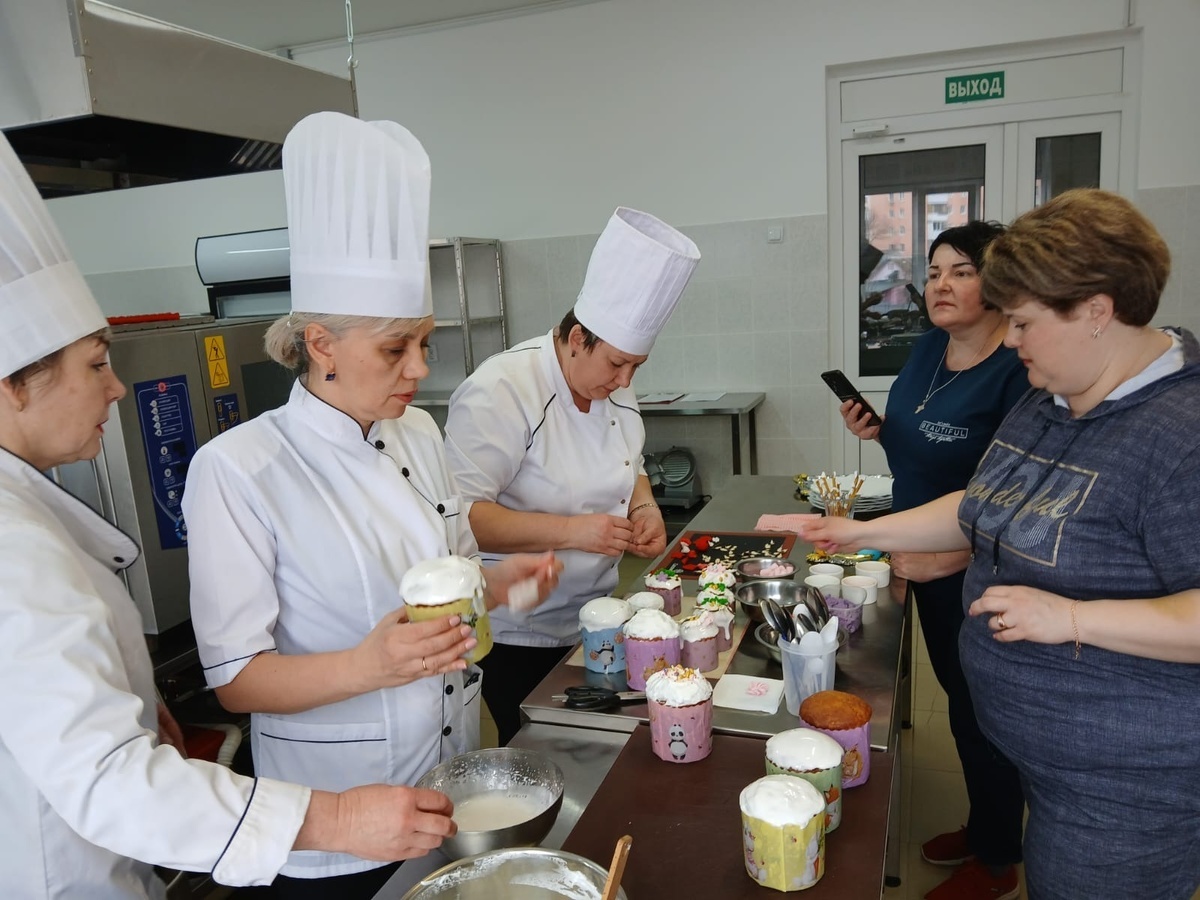 Мероприятие провели в многопрофильном профессиональном колледже. В многопрофильном профессиональном колледже города Октябрьский провели мастер-класс «Пасха пахнет миром», в котором приняли участие родственники бойцов СВО. Женщины готовили куличи по самым разным рецептам, узнавали, как оригинально украсить изготовленную выпечку. По словам заместителя директора по воспитательной работе Дины Кудряшовой, это уже второй проведенный ими мастер-класс для жен и мам военнослужащих. В нем принимают участие сотрудницы колледжа, чьи мужья находятся «за ленточкой» и мамы студентов. Фото сотрудников колледжа.