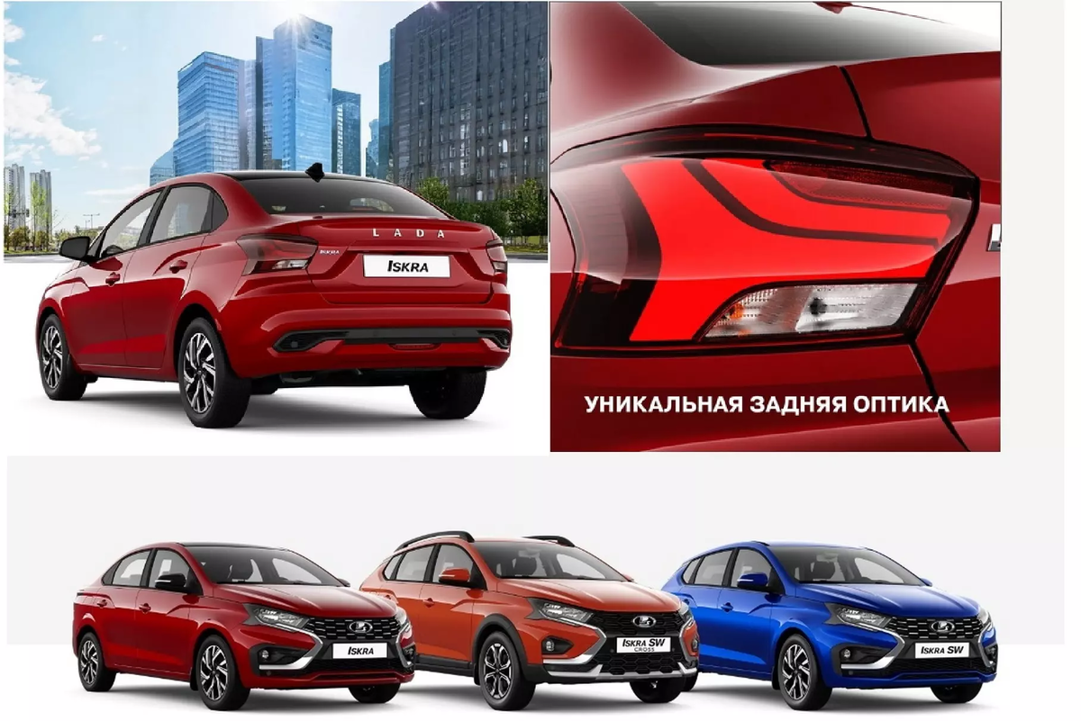 Главное внимание в материалах уделили седану в тёмно-красном цвете. АвтоВАЗ подчёркивает, что Lada Iskra вдохновлена концепт-карами и «сделана на мировой платформе».