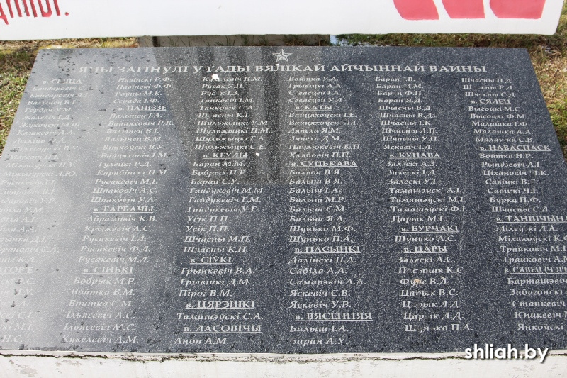 В продолжение публикаций в рамках проекта «Места памяти» рассказываем о памятниках, расположенных на территории Синьковского сельского совета. Памятник землякам, погибшим в годы Великой Отечественной войны, в аг. Синьки Памятник воздвигнут в 1983 году в центре деревни, неподалеку от центральной дороги и здания сельсовета. Он представляет собой целую композицию. На мемориальной доске увековечена память жителей Синьковского сельсовета, которые умерли или пропали без вести в годы Великой Отечественной войны. Всего отмечено около 150 имен. Это жители деревень Бурчаки, Весенней, Горбачи, Загорье, Коты, Кевлы, Кунавы, Ласовичи, Новоспасска, Понизье, Пасынки, Синьки, Сивки, Сивицы, Сутьково, Селец, Танщины, Цари, Терешки. Памятник в д. Коты Установлен в 1967 году в память о местных жителях сельсовета, погибших в годы Великой Отечественной войны. На мемориальной доске перечислены имена 40 человек из деревень Синьки, Кевлы, Коты, Ласовичи, Терешки, Сивки. Памятник в виде стелы увенчан пятиконеч