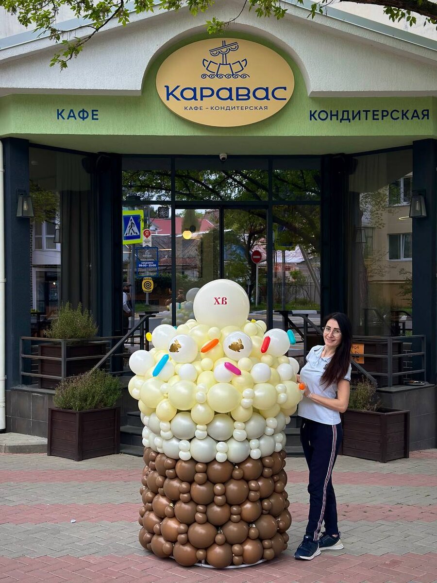 Месяц назад я устроилась в кондитерскую «Каравас» (шары всё равно остаются основной работой , просто совмещаю ) За это время я ещё не попробовала всех десертов, но увидела , как все готовится и хочу сказать, что делают это с БОЛЬШОЙ ЛЮБОВЬЮ 🙏🏻 Вчера мы отправили наборы куличей на городскую ярмарку и меня попросили придумать что-то из шаров чтобы привлечь внимание покупателей- я придумала КУЛИЧ 😁 В течении дня звонили и говорили, что люди подходят, покупают куличики и фоткаются с ним 🥹 Мне теперь интересно, есть среди читателей моего канала те, кто видел кулич и сфоткался с ним на ярмарке 🥹 если да, поделитесь фотографиями в комментариях🙏🏻