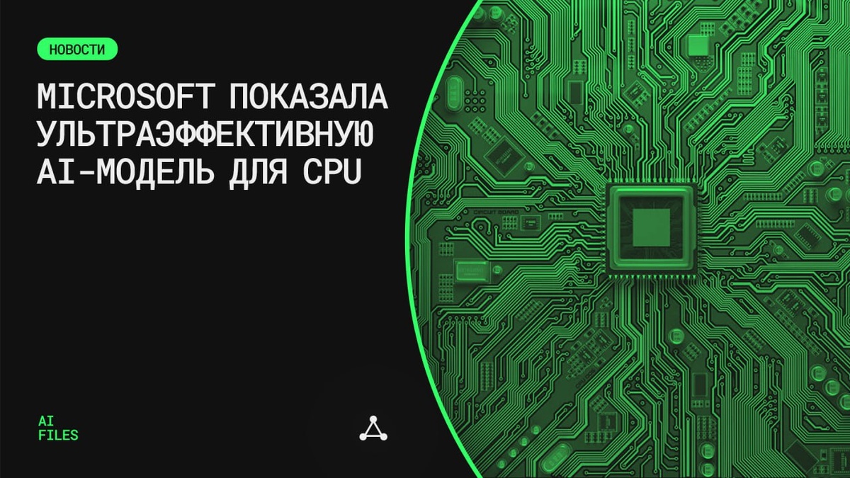 Microsoft показала ультраэффективную AI-модель для CPU Microsoft представила BitNet b1.58 2B4T — крупнейшую на сегодня «бит-сеть» (bitnet), которая способна работать не на GPU, а на обычных процессорах, включая Apple M2, Intel и AMD. Модель опубликована с открытым исходным кодом под лицензией MIT. BitNet использует лишь три значения весов — -1, 0, 1, что делает её в разы более памяти- и энергоэффективной по сравнению с классическими моделями. При размере 2 миллиарда параметров она была обучена на 4 триллионах токенов и опережает по ряду тестов такие модели, как Llama 3.2, Gemma 3 и Qwen 2.5. Что важно: • Работает на CPU с поддержкой AVX2/AVX-512 • Быстрее аналогов примерно в 2 раза • Существенно экономит память • Подходит для слабых и компактных устройств Минус — Для запуска требуется специальная библиотека bitnet.cpp, которая пока ограничена по совместимости. 📂 AI FILES 📂 BitNet — один из примеров того, как можно создавать ИИ для маломощных машин без жертв в скорости и качеств