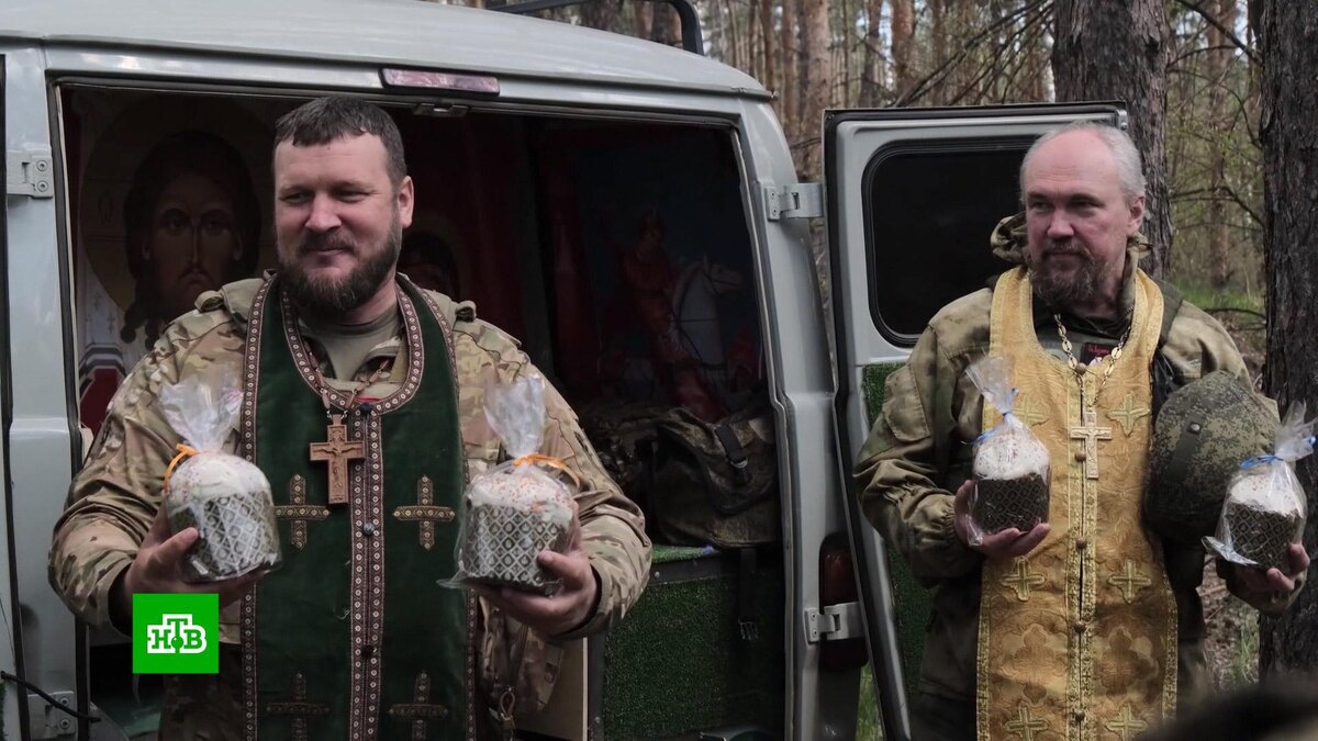 [ Смотреть видео на сайте НТВ ] К празднику Пасхи активно готовятся российские бойцы на передовой в зоне специальной военной операции, естественно, без какого-либо ущерба для основной миссии. Пекари группировки войск «Запад» приготовили партию куличей по классическому рецепту. Каждый, как и положено, покрыт глазурью и украшен сладкой посыпкой. Свежую выпечку отправили бойцам на линии соприкосновения. Кроме того, повара сварили и покрасили большое количество яиц. В армейских нормах снабжения пасхальные блюда не значатся. Но тыловые службы решили порадовать боевых товарищей в честь праздника особым угощением. А военные священники доставили освященные куличи на передовую в подразделения группировки «Центр». В полевых храмах провели торжественную службу для наших бойцов. Военнослужащие смогли приложится к иконе Спаса Нерукотворного. [ Смотреть видео на сайте НТВ ]