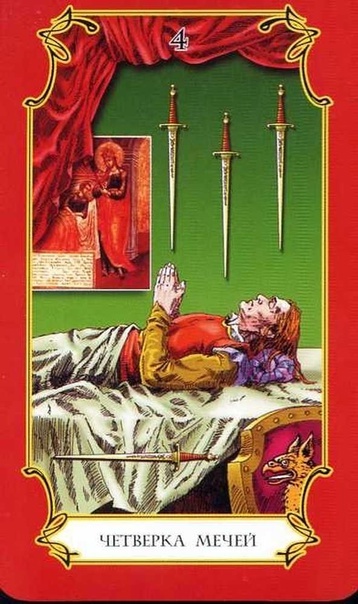 В политике, переговорах, даже в любви — «Четверка Мечей» может говорить: «Не спеши, замри. Посмотри. Подожди. Тогда поймёшь, куда и как двигаться».Это мудрая пауза, не слабость.