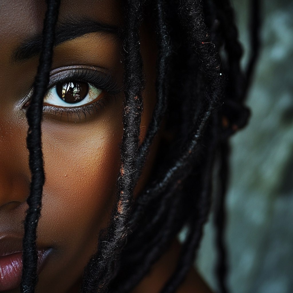 Создано на основе запроса: a photograph of love. Black woman with dreads. Abstract. Strange.