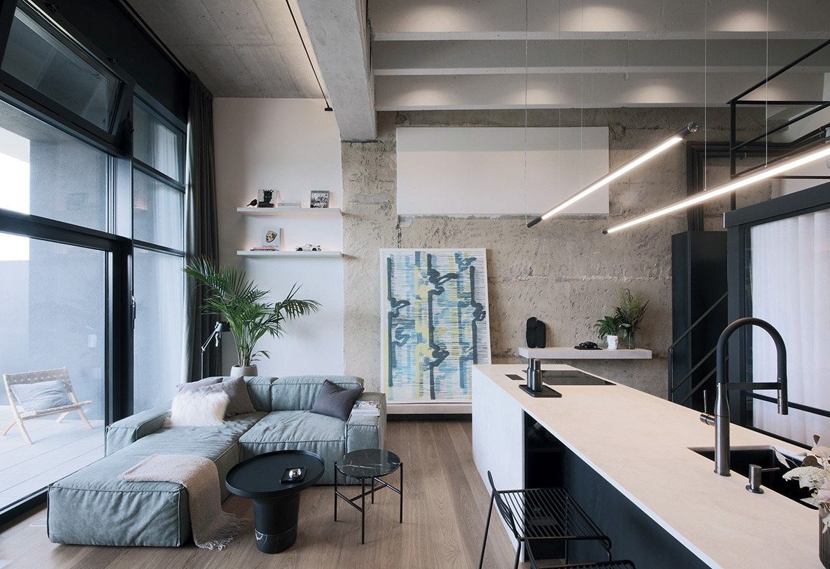 Небольшой индустриальный лофт А вот это уже индустриальный дизайн в своём чистом виде. Бетон, мебель в тёмных тонах, высокие потолки и лаконичная современная мебель — эта квартира в одном из новых домов. Это соответствует практически всем критериям жилья в индустриальном стиле. Так как жильё имеет небольшую площадь, дизайнеры использовали всю высоту стен — спальня разместилась на антресольном этаже. Ну а бонусом — прекрасный балкон-терраса с видом на прекрасный город! @kuligovskaya