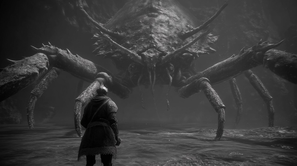 Создано на основе запроса: giant crustacean kaiju, boss fight, screenshot, Dark Souls