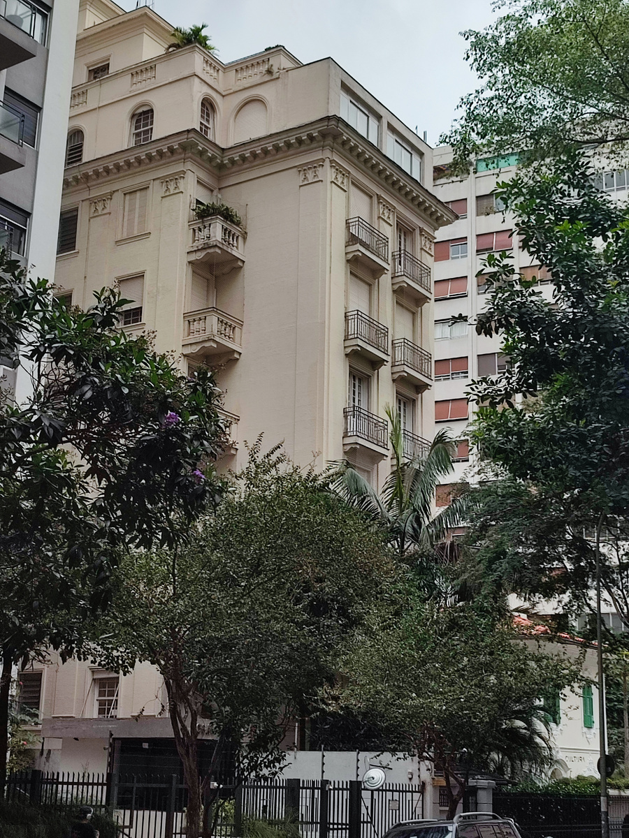 Кто бы мог подумать, всего в 500 метрах от нас находится самая дорогая улица СП - авенида Ижиеонополис. Здесь чисто, атмосферно, нет бомжей, и то и дело приземляются такси-вертолеты на площадки высоток. Высотки здесь интересные, строились с начала 20 века, есть даже представитель паулисткого брутализма - эдифисио Лозанна с разноцветными ставнями. Классные модернисткие проекты, ар-деко, совсем современные. Ну и конечно старинные особняки, огороженные трехметровыми коваными оградами. Еще один модернисткий комплекс, видно, что на крыше устроена зона отдыха Вот такие еще примеры вертикальной застройки. Резиденции, некогда принадлежащие богатым фамилиям. Некоторые, впрочем, по сю пору остаются жилыми. Если пройти вперед и спустится 400 метров вниз по Rua Aracaju, можно найти Музей бразильского искусства. Здание музея спроектировал француз Огюст Перре, пионер железобетонной архитектуры. Холл производит впечатление. Фрагменты исторических зданий 18 века на фоне современных витражей. В мае