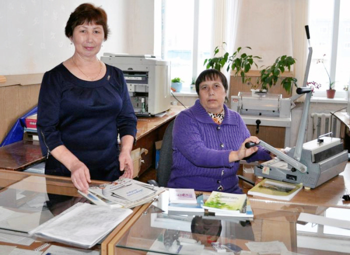 «Чего только не было за прошедшие годы, – вспоминают мои бывшие коллеги. – И задерживались до утра, если отключался свет, случалась поломка или приходилось переделывать газету полностью. Не дай Бог уронить свёрстанную полосу – всю работу надо начинать заново. Если при наборе пропустишь одно слово, перенабирать надо весь абзац, букву – всю строку». Экономические реформы двухтысячных привели к закрытию районной типографии. Оксана и Светлана начали работать в созданном на базе районной газеты редакционно-издательском комплексе. Когда началась компьютеризация газетного производства, переход на офсетную печать, Оксана Евгеньевна освоила компьютер: электронный набор, вёрстку, современный полиграфический дизайн. Светлана Акитаровна совершенствовала тонкости печатного дела уже на современном ризографе, она была и переплётчиком, и бумагорезчиком. Эти мастерицы печатного дела могли выполнить порученную им работу, что называется, с закрытыми глазами. Через их умелые руки прошли сотни тысяч экземпляров «районки», различной полиграфической продукции. А сколько книг местных авторов с их помощью увидели свет. Оксана Кильдиярова набирала текст произведений, оформляла книжный дизайн, Светлана Петряева печатала, собирала по страницам книги, переплетала их.